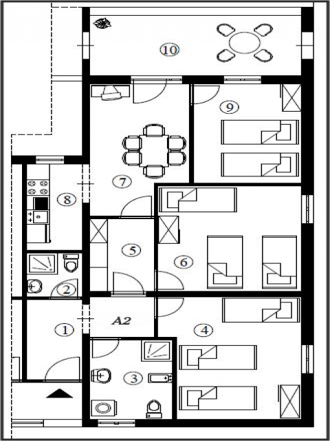 3 spavaće sobe, blagovaonica, kuhinja, 2 kupaonice, terasa, P=76 m