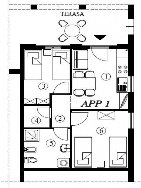 2 spavaće sobe, blagovaonica s kuhinjom, kupaonica, terasa, P=40 m